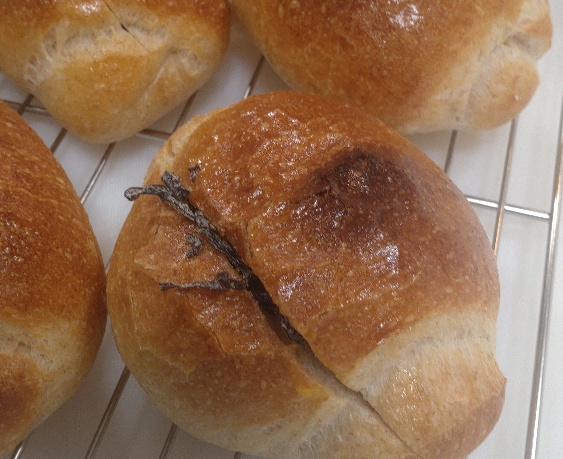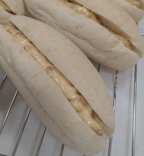 バニラビーンズの香りが効いた濃厚とろっとカスタードをたっぷり包み、低温で焼き上げました。低温で焼くことでパン生地のもっちり感を最大限に引き出してます。