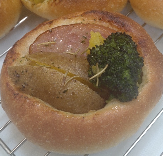 天然酵母で15時間以上じっくり低温発酵させました。フランス産の小麦を配合し、小麦本来の甘みや香りを味わうことができます。超高温でカリッと焼き上げています。